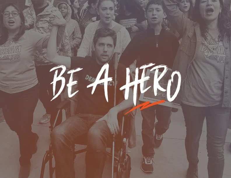 It was a great honor to design the branding for the Be A Hero campaign. Be A Hero is an organization that raises money to fight for accessible healthcare. It was founded by Ady Barkan, who suffers from ALS. This disease will eventually take his life. One thing Ady often says in his talks is, “I may be dying, but I’m not going quietly.” Even though travel is difficult and talking is almost impossible now, he continues to fight on.